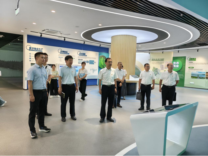 与会人员参观金水集团科技成果智慧园区展厅。各方党员同志们了解了基于传感器数据实时监测水质并远程操控设备的智慧管理系统。