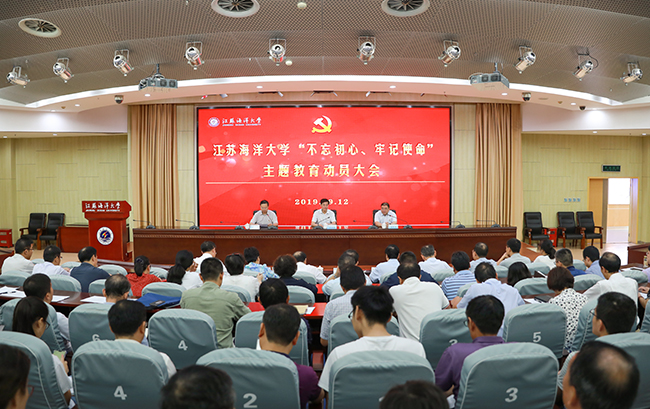 9月12日上午,我校在会议中心黄海厅召开“不忘初心、牢记使命”主题教育动员大会,校党委书记、校党委“不忘初心、牢记使命”主题教育工作领导小组组长王自力作动员讲话,传达学习中央、省委关于“不忘初心、牢记使命”主题教育的有关会议和文件精神,对全校开展主题教育进行部署。省委第十四巡回指导组副组长叶柏森出席动员大会并讲话。校长、校党委副书记宁晓明主持会议。
