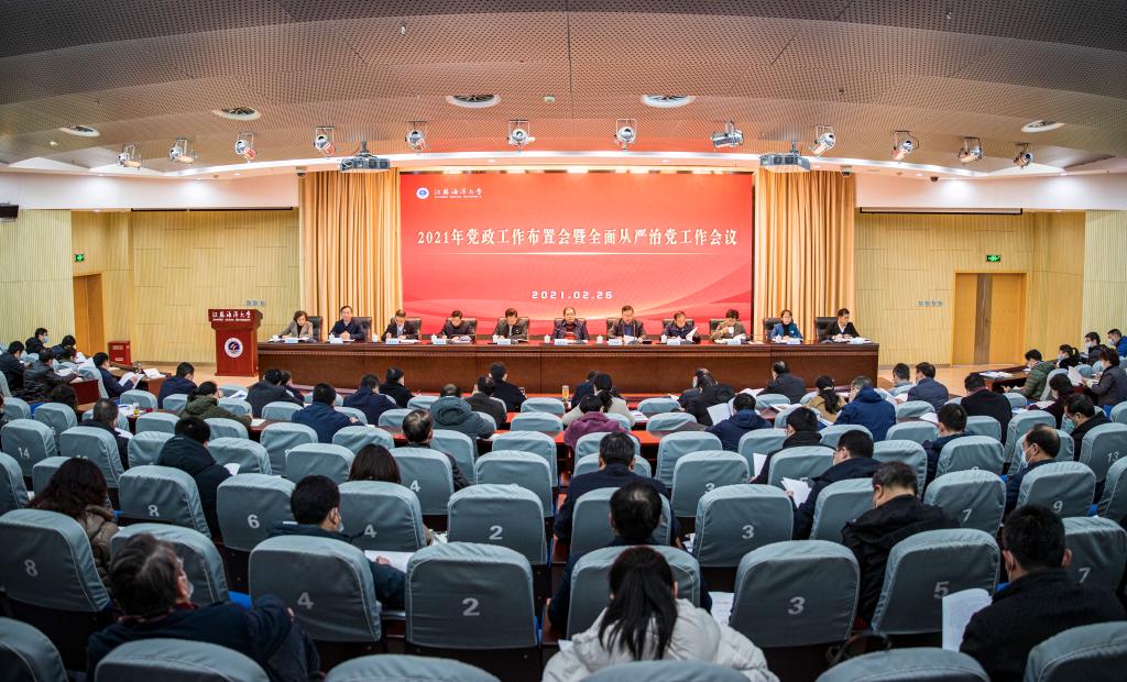 2月26日上午,学校2021年党政工作布置会暨全面从严治党工作会议在苍梧校区会议中心黄海厅召开。校党委常委、全体校领导出席会议。会议由校党委书记王自力主持。全体中层干部参加会议。各学院党政办主任列席会议。